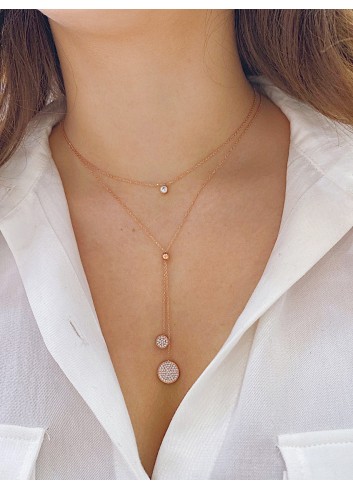 Craquez pour ce superbe collier en Argent 925 Or Rose recto-verso serti d’oxydes de zirconium cubique de chaque côté.